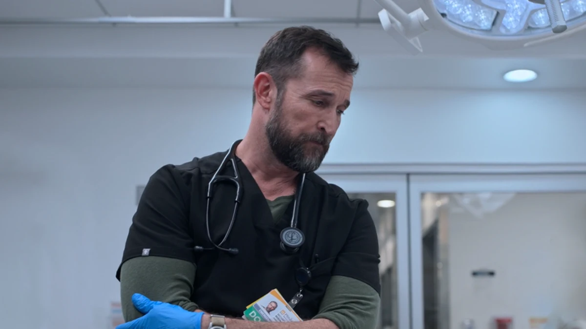 La cámara insiste en esa distancia clínica. Dana le enseña a Emma cómo limpiar un cuerpo con el “brazo emocional” necesario para hacer ese trabajo a diario. El episodio 6 de la temporada 2 de The Pitt introduce una progresión: cada vez que volvemos a Louie, hay un gesto más de restitución. “La siguiente vez que lo ves, está un poco más limpio. La siguiente vez, ves una parte de él. Está cubierto con una sábana blanca y ves su mano”, describió Wyle.